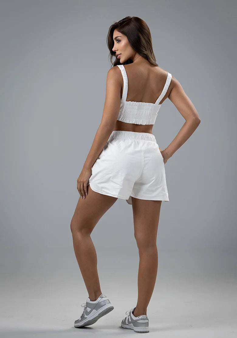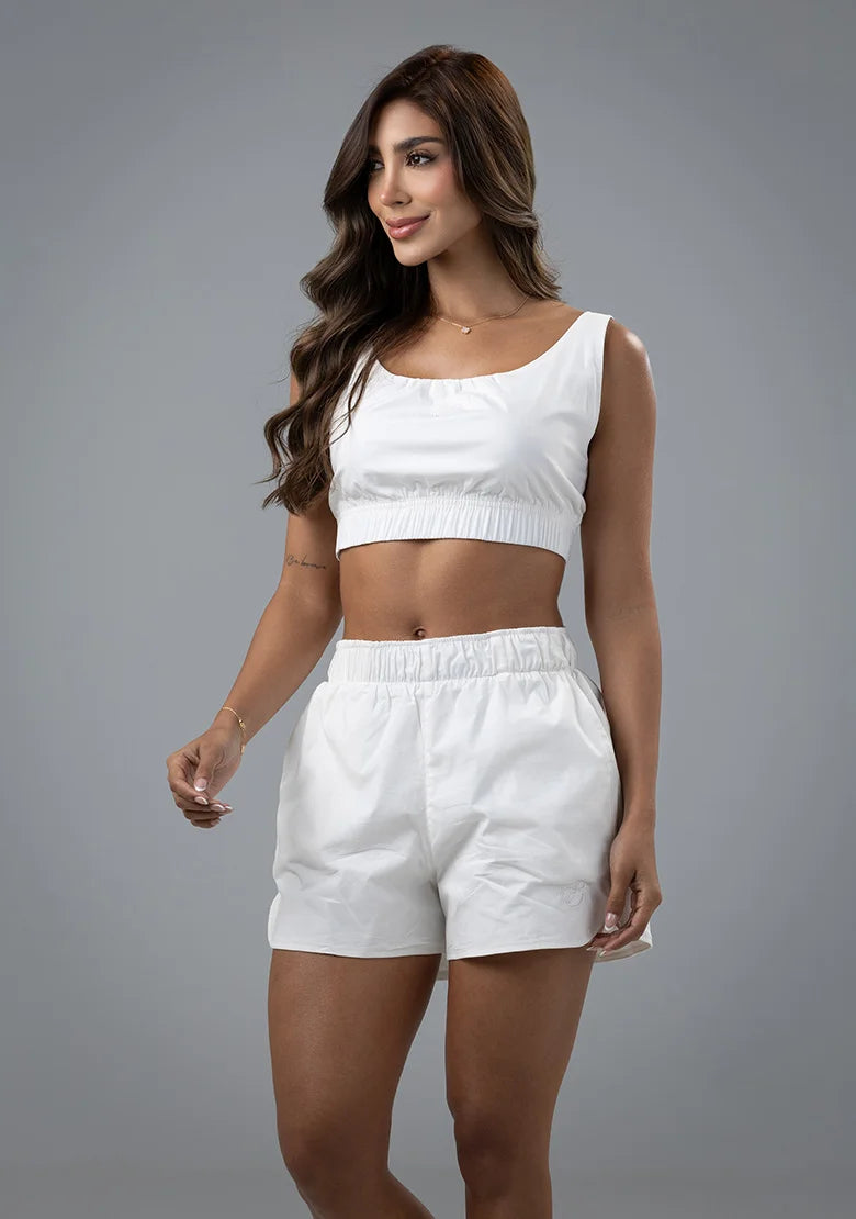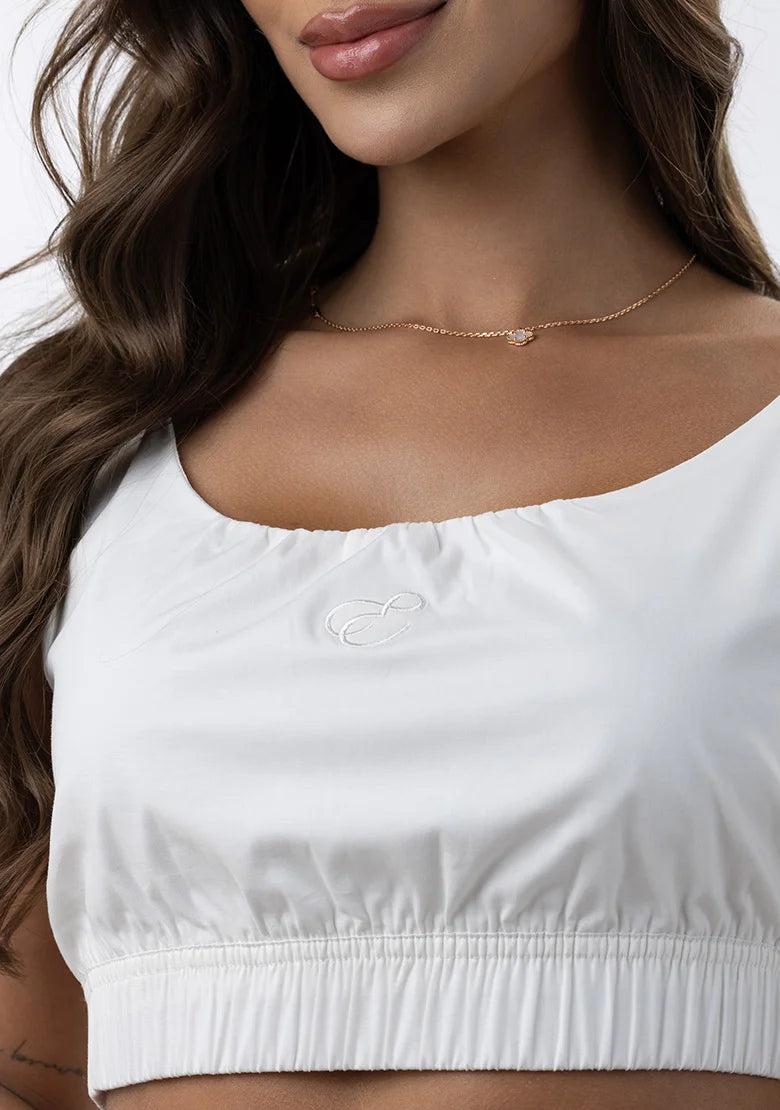 Un top que vibra con tu energía. Ajustado en algodón camisero, con escote redondo y bordado frontal, es ideal para llevar de día con looks sencillos o de noche con piezas más arriesgadas.